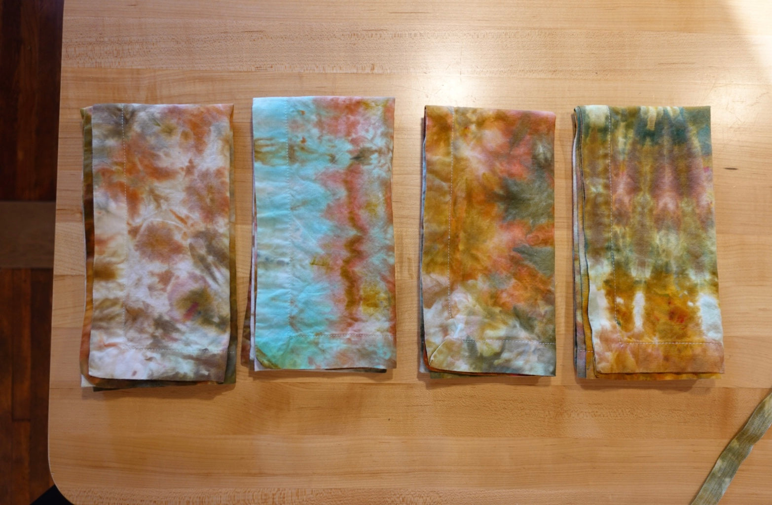 Sets of 4, in a variety of earth and nature tones. No two alike! Bundles come ready for gifting tied in a length of hand-dyed ribbon.